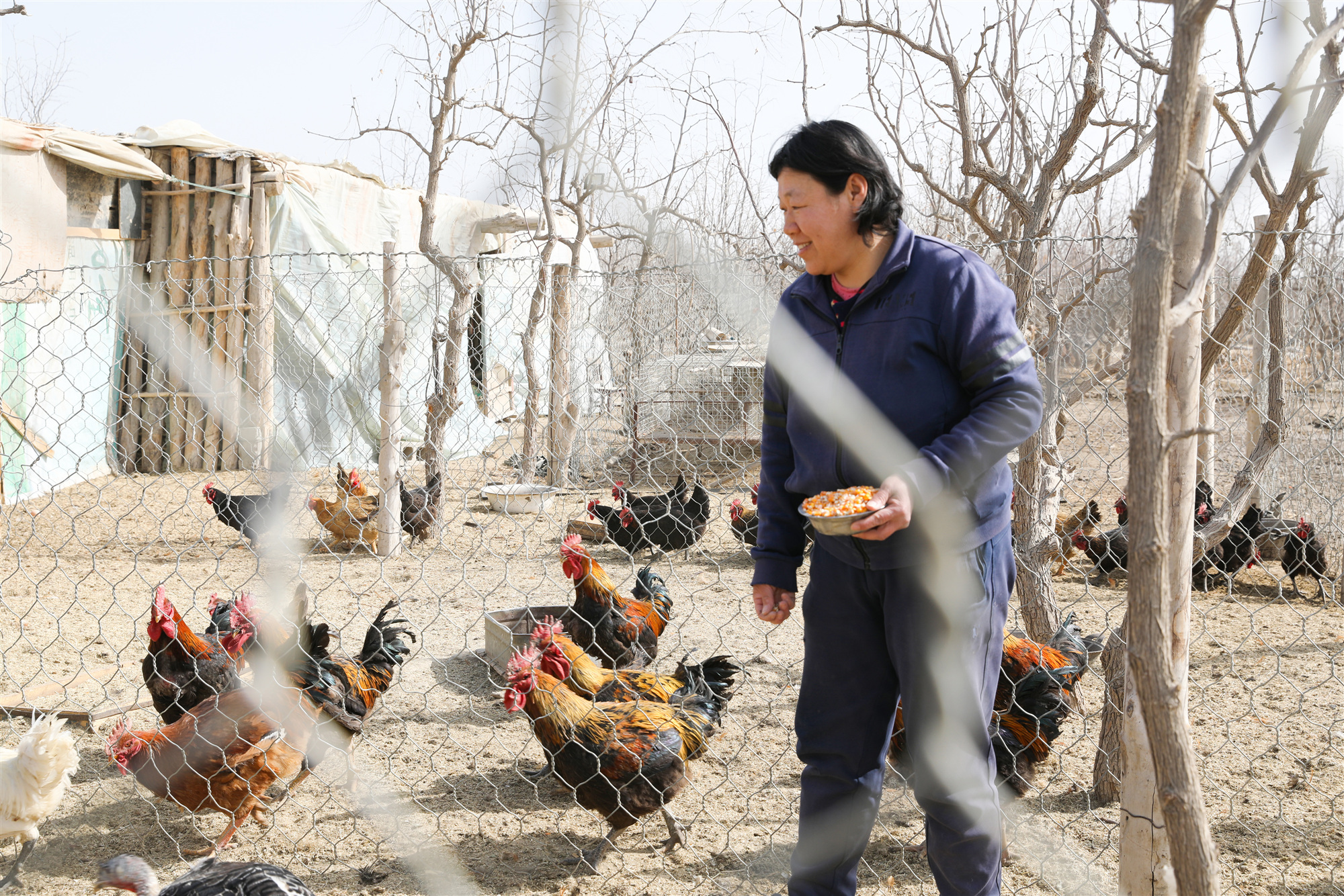 美丽连队建设改变了连队整体面貌,也为职工群众带来了新的机遇。在该团八连职工左学军的家里,宽敞的小院被划分为“前庭”居住区和“后院”养殖区,左学军的妻子杜庆梅正在“后院”为火鸡、兔子等畜禽喂食。