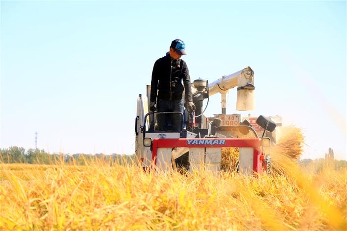 四师六十八团三连职工在操作现代化机械收割水稻(资料图片)。据本报资料库