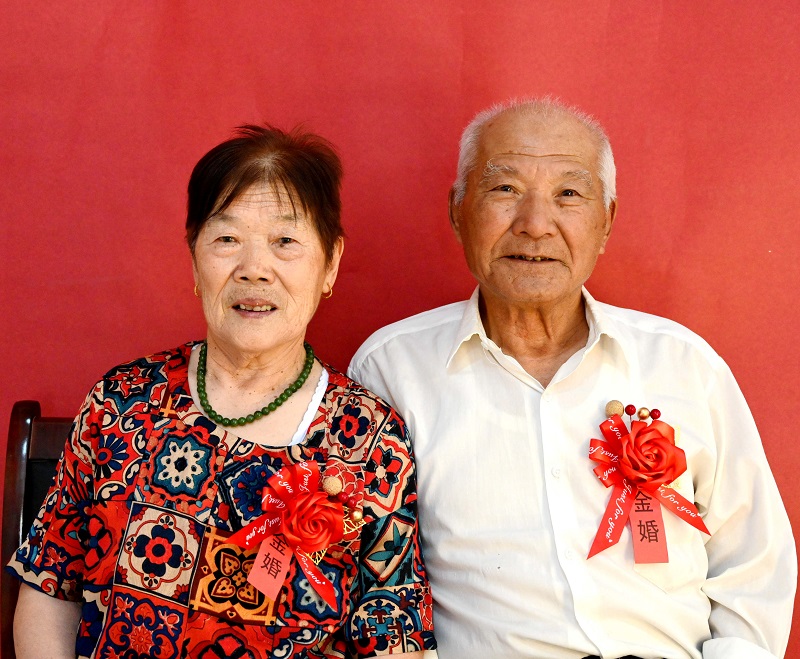 赵卫莲、付胜弟夫妇金婚纪念照片。