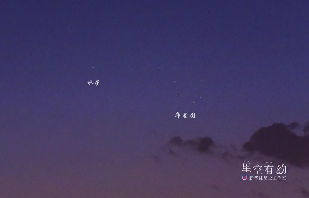 这是天津市天文爱好者杨婧2022年5月1日在天津拍摄的水星和昴星团。(本人供图)