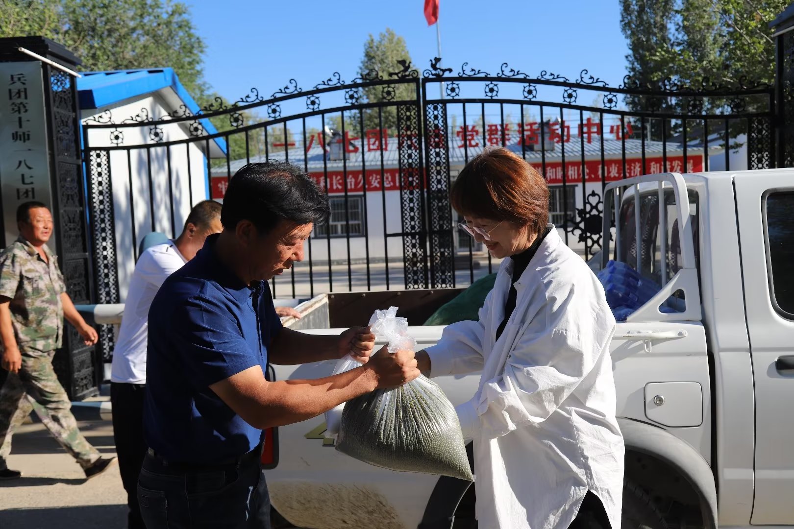 慰问组将绿豆、白砂糖送到了一八七团六连值班室。袁鹏程 摄