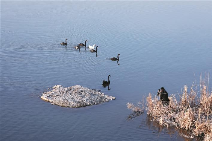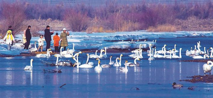 “快来,给我和天鹅合个影。”“还有我,我也要。”游客们频频举起相机、手机,定格美丽瞬间,不时发出惊叹声。寒风凛冽,挡不住大家热情似火。