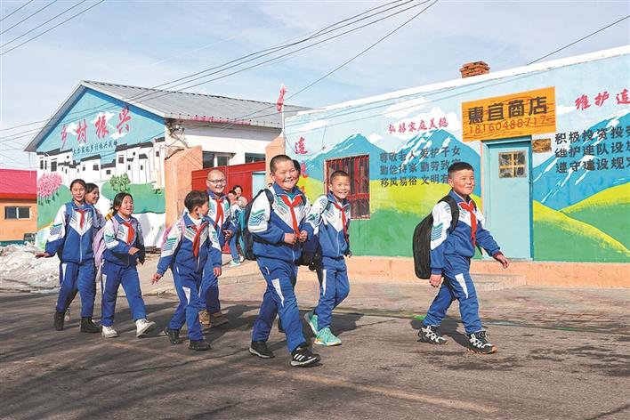 六师北塔山牧场学校的学生坐着免费校车回到距离学校20余公里草建连的家(摄于2月20日)。该校学生在校学习、吃饭、住宿全部免费,每周有免费校车接送回家。 兵团日报常驻记者 李华北 摄