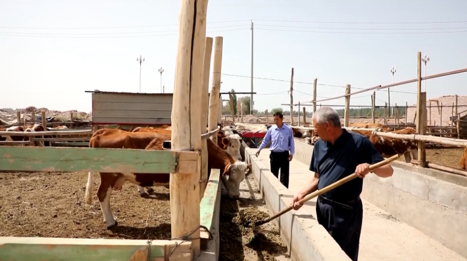 马木提·乃买提说:“有了余海军兄弟的帮助,第一年我买了4头牛,第二年就有了8头,这几年慢慢增加到50头了。”