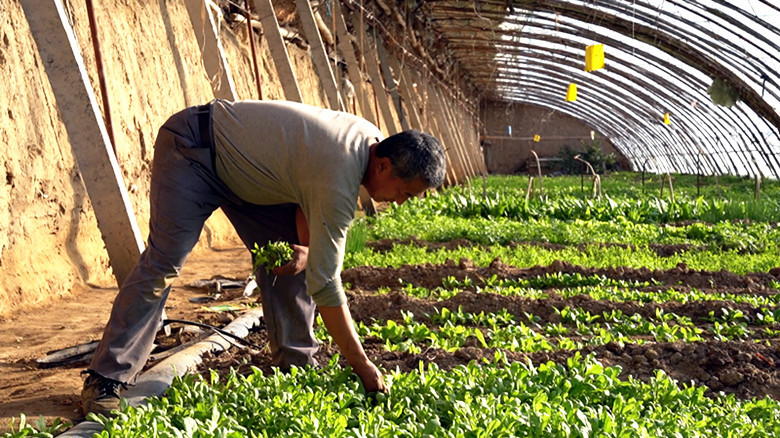眼下,四师六十四团二连职工李子龙也在大棚里忙着翻地。他计划再种一些绿叶蔬菜,增加设施大棚的收益。