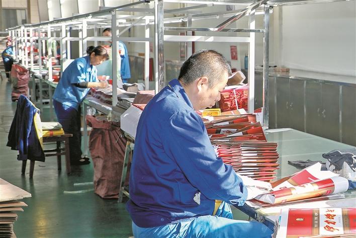 12月20日,在新疆伊力特印务有限责任公司生产车间内,员工正在制作酒盒。近年来,该公司积极履行社会责任,大批招用残疾员工。截至目前,该公司共雇用残疾员工67人,占员工总数的69%。兵团日报常驻记者杨俊钦 摄