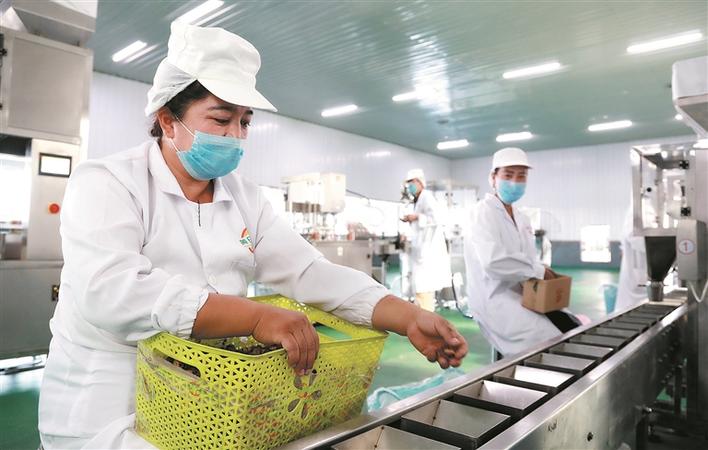 十三师黄田农场群众在该场企业喜折惠特色农业产业基地加工干果。该企业在实现自身发展的同时,积极履行社会责任,吸纳团场脱贫群众进厂就业,助力巩固拓展脱贫攻坚成果(资料图片)。兵团日报全媒体记者赵宝山 摄