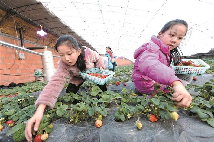 1月10日,游客在十二师三坪农场草莓主题公园体验采摘的乐趣。十二师融媒体中心 提供