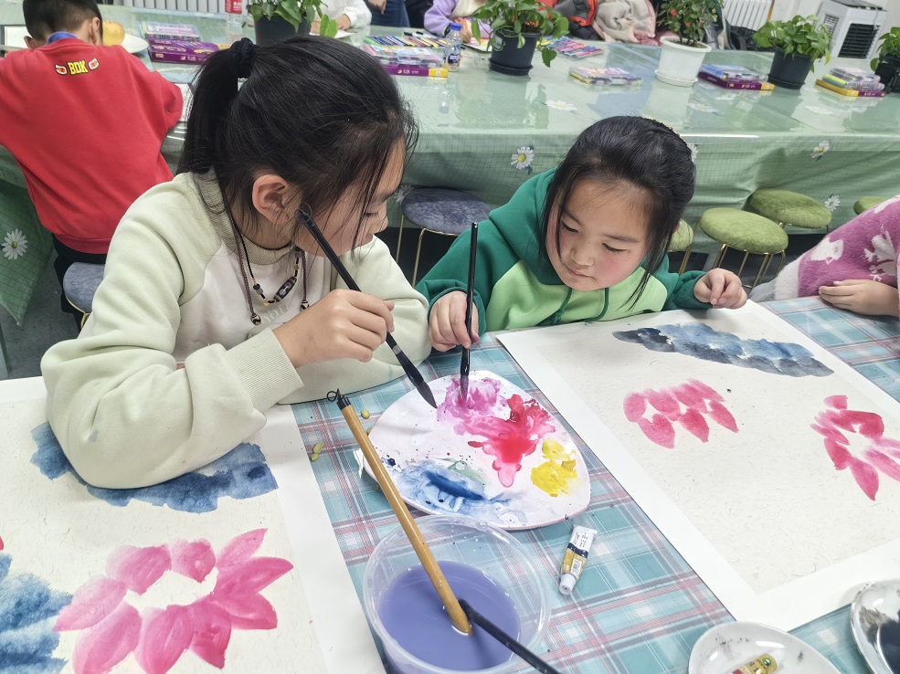 任荣采用理论与实践相结合的形式,为孩子们讲解国画的基本技法和常识,通过画荷花等案例,让孩子们更好地理解国画的绘画技巧。孩子们在任荣的指导下,逐渐掌握了用色、用笔的方法,画出的作品越来越精美。