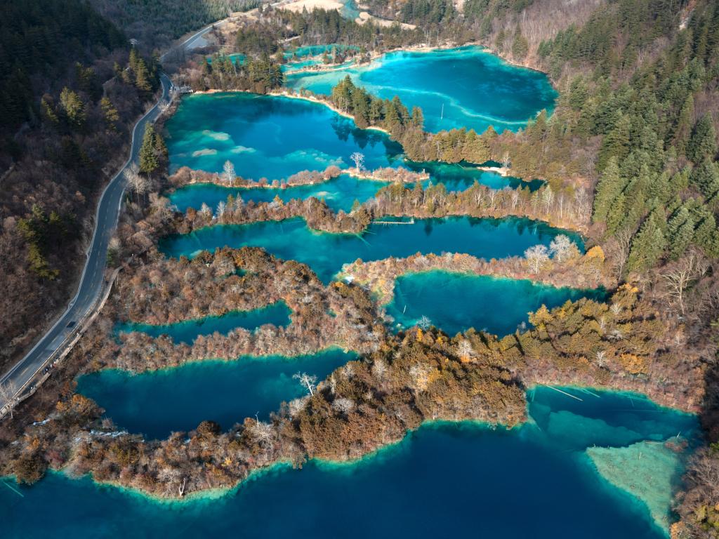 这是12月7日拍摄的九寨沟景区一角(无人机照片)。