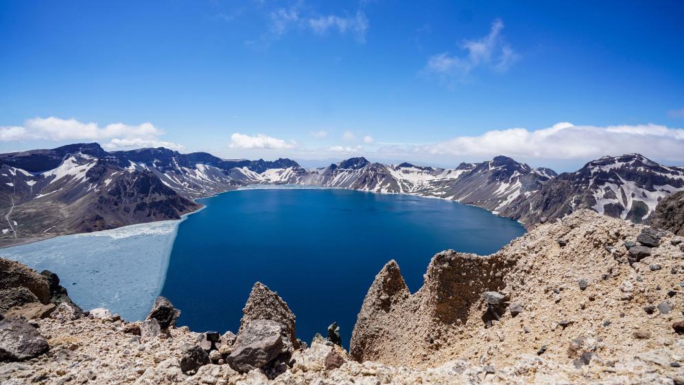 5月24日,长白山天池湖水破冰重现。