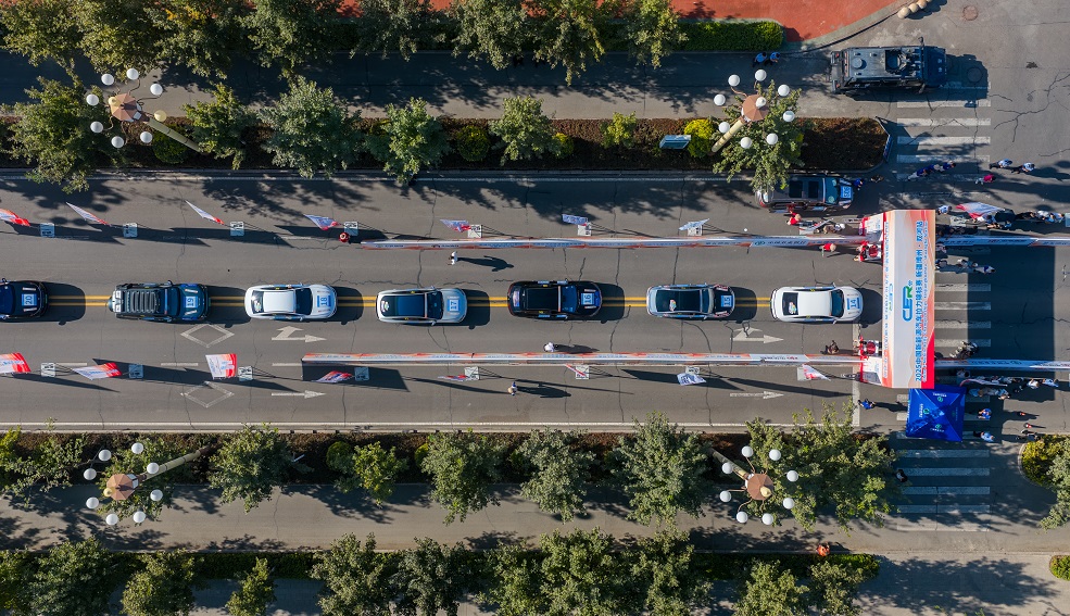 发车仪式现场热烈,70辆赛车列阵待发,140名选手身着统一服饰,交流战术,难掩期待。10时许,随着“发车”一声令下,旗帜挥起,赛车依次驶离,电机平顺嗡鸣取代引擎轰鸣,力道不减。路旁观众欢呼如潮,将现场气氛推向顶点。