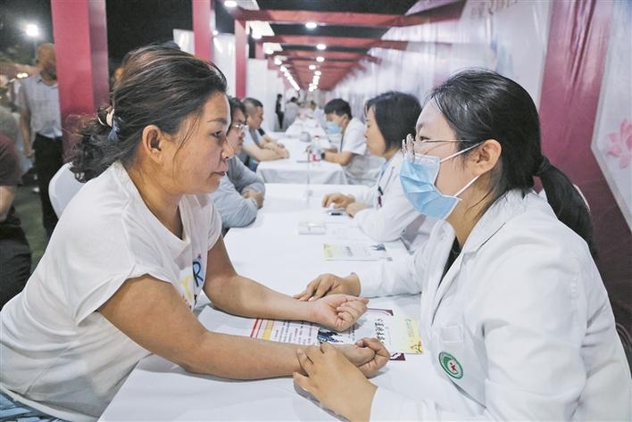 8月13日,在兵团“百市千县”中医药文化惠民示范活动启动仪式暨大型中医文化夜市活动上,来自十三师中医院的专家为职工群众义诊。王璇 摄