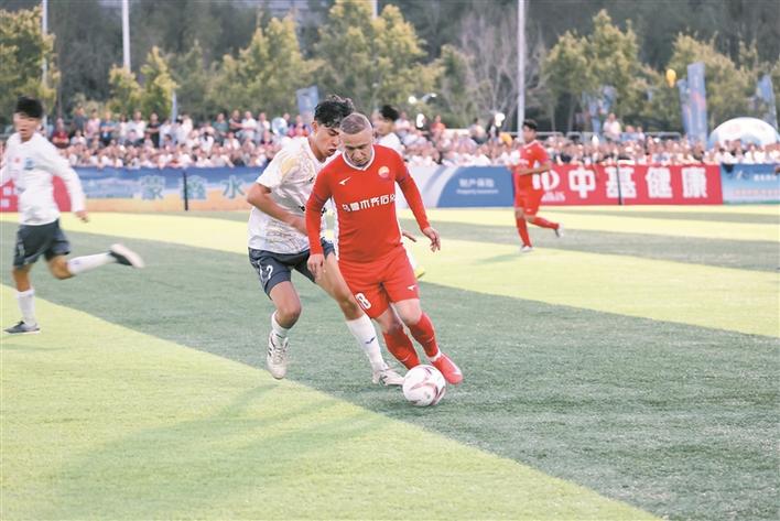 8月17日,运动员在五家渠市体育公园参加新疆和兵团全民足球超级联赛,吸引职工群众观赛。兵团日报常驻记者李华北 摄