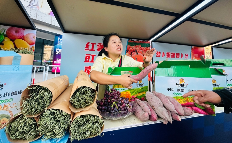 本次文化旅游季创新推出的“展销一体”融合模式,真正实现了“文化共演一场戏、产品共摆一条街”的生动局面。在舞台一侧的“兵地农产长廊”中,特色产品吸引了大量观众驻足品尝、购买。