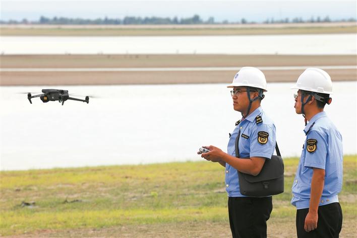 在奎屯河流域湿地自然保护区,工作人员操控无人机进行生态巡察(资料图片)。张西安 孙忠昌 摄