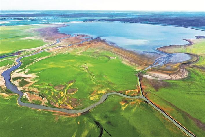 航拍的八师石河子蘑菇湖水库湿地(资料图片)。张德智 摄