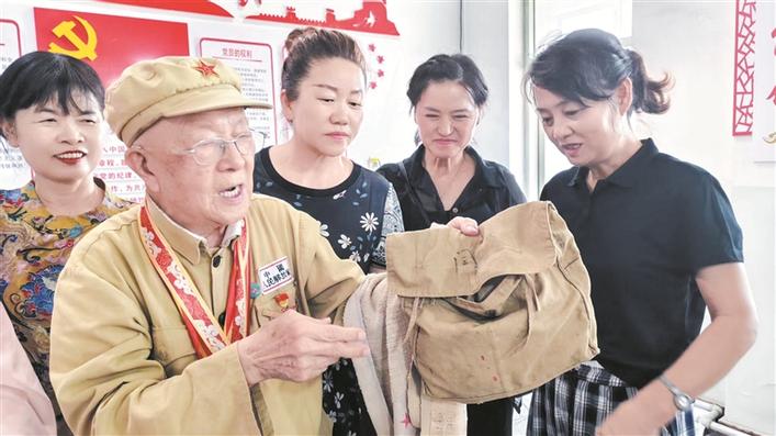 四师六十六团老战士宣讲团成员闫欣秋拿出当年用过的老物件,为职工群众讲述屯垦戍边的故事(资料图片)。兵团日报常驻记者 李惠 通讯员 武淑洋 摄