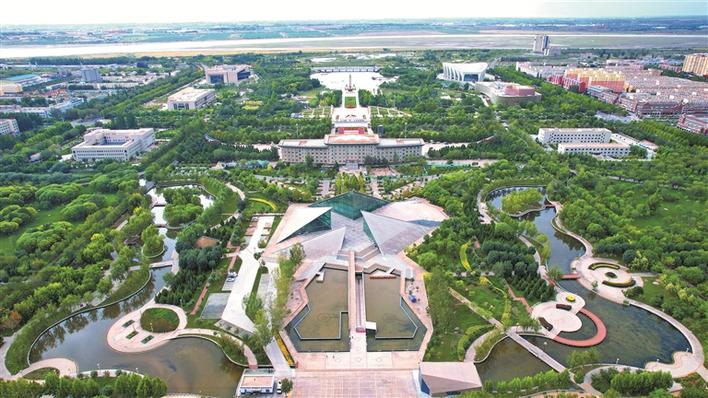 航拍一师阿拉尔市的三五九旅屯垦纪念馆(资料图片)。官跃志 摄