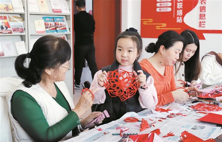 二师二十二团十一连文化活动室内,居民在剪纸(资料图片)。谢江林 胡婷婷 摄