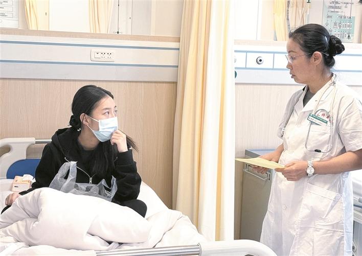 10月2日,刘冬霞(右)在病房内询问患者病情。左宏洲 摄
