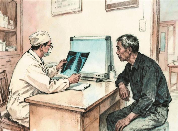 ⑤2013年春天,张万红出现了胸闷、腿软的症状,平时步行20分钟的路程,他竟用了一个多小时。他不得不请了人生中的第一次病假。张万红被医生诊断为胸腔积液,病因与他在野外工作时喝冰水、吃冷饭密切相关。