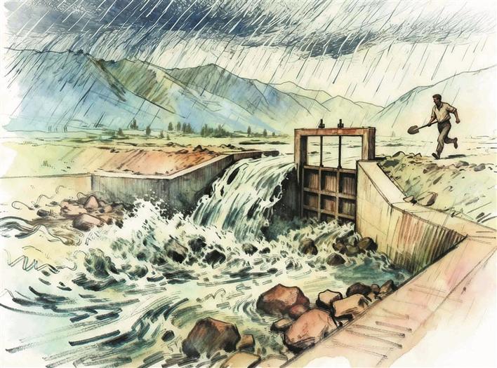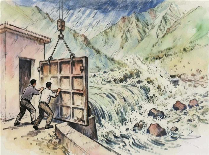 ⑧张万红对彭伟华说:“洪水一多,泥沙量就大,这时候就得赶紧排沙。如果沙子淤满了,闸门摇不动,我们就得下水挖沙。”他指着排沙闸认真叮嘱,将多年积累的工作经验倾囊相授。