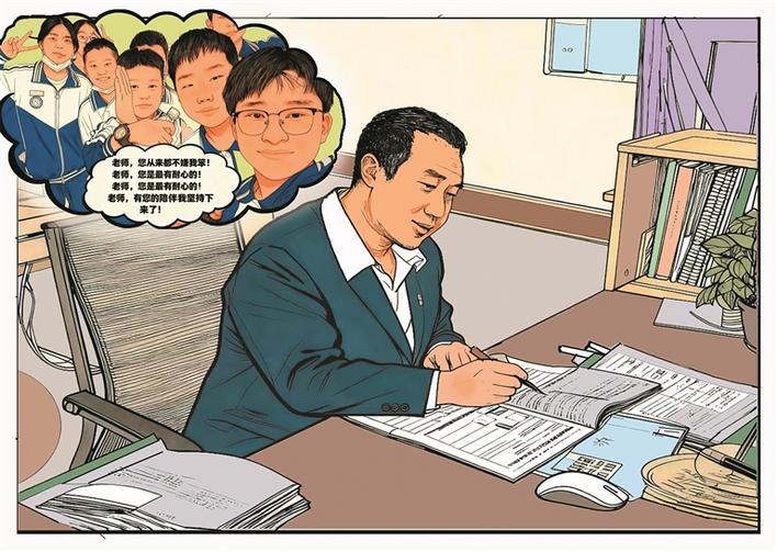 ⑥邵宝斌从不放弃每一个学生。每当感觉劳累时,他的脑海里就回响起学生说过的话,“老师,您从来都不嫌我笨!”“老师,您是最有耐心的!”“老师,有您的陪伴我坚持下来了!”……