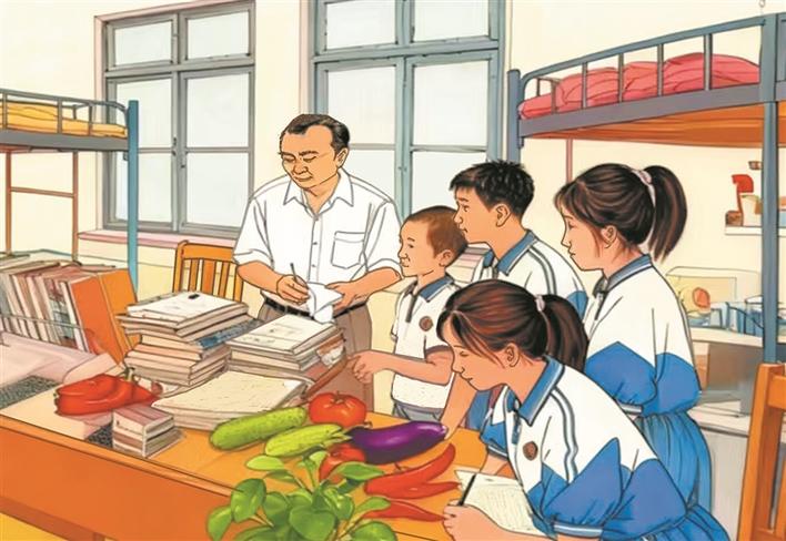 ②邵宝斌把全部心血与热爱都给了学生,常常废寝忘食地备课、批改作业。学生也十分爱戴他,经常悄悄地往他的书桌上放一些自家种的蔬菜和瓜果。学生的温暖举动,深深感动着他。