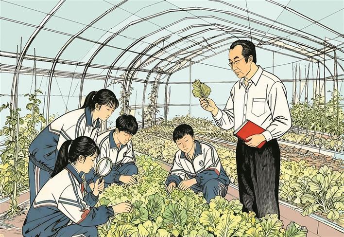 ④邵宝斌为学生开设科普课堂,带领学生探访蔬菜大棚等,指导学生调查研究、录制科学小视频,鼓励学生走进大自然、走进生活,开展创新实验。