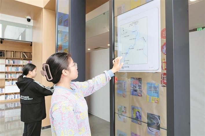 在四师可克达拉市图书馆,读者在瀑布流电子借阅机前检索自己需要的图书(资料图片)。武绍力 摄