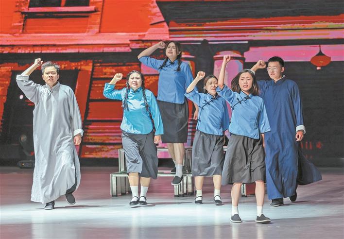 大型红色舞台剧《红色觉醒年代之觉醒之路》演出现场(资料图片)。魏怀娟 摄