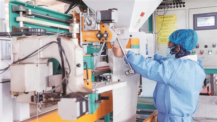 9月30日,在三师五十四团兴安镇油莎豆初加工厂,分装工杨金秋操作油莎豆筛选打包机。兵团日报常驻记者 李芸 通讯员 梅雨琪 摄