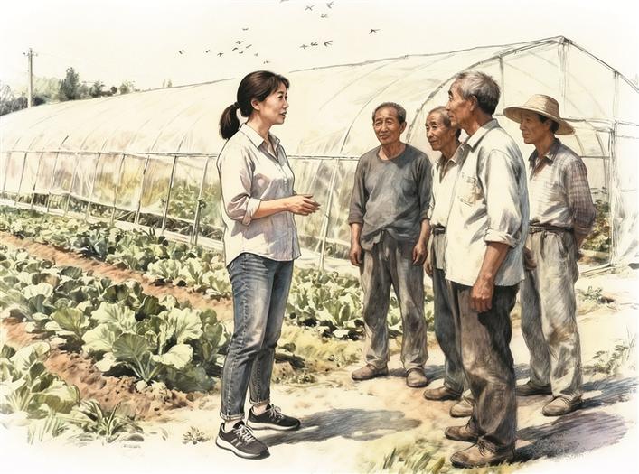 ⑧一人富不算富。朱广兰把大棚蔬菜种植技术毫无保留地传授给身边的职工群众。她时常在蔬菜大棚里向大家传授松土、施肥、浇水、预防病虫害、保产保收等技术,成了深受大家信赖的“土专家”。