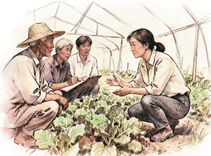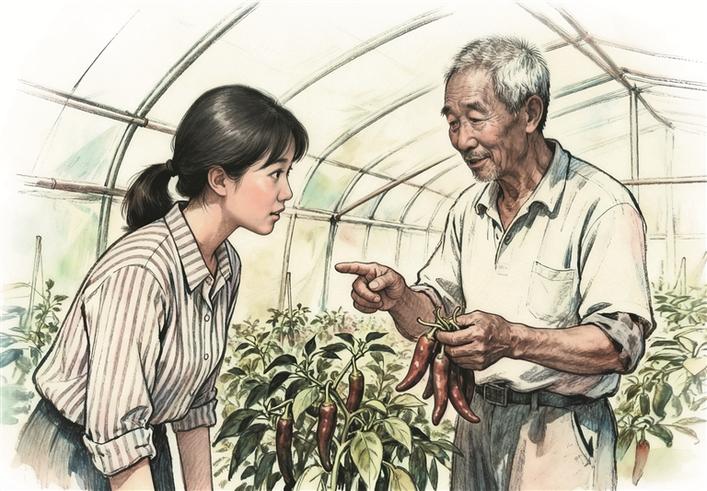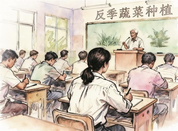 ⑥此时,团场邀请专家进行农业知识专题培训,提高职工群众蔬菜种植技术,促进多元增收。朱广兰积极参加培训,买来相关书籍认真学习。