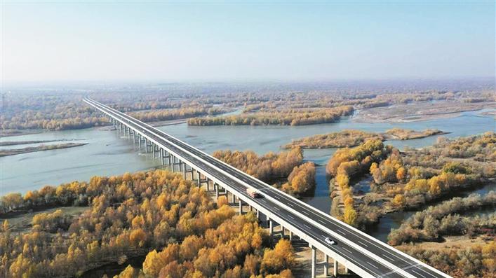 可克达拉讯(兵团日报全媒体记者马雪娇、陈琼 常驻记者杨俊钦)四师可克达拉市西南端2公里处,可克达拉市二桥犹如一条巨龙横卧在伊犁河上。放眼望去,桥体与湿地秋色交融,成群的候鸟掠过天际,不时有野兔、雉鸡等野生动物从桥下穿过。