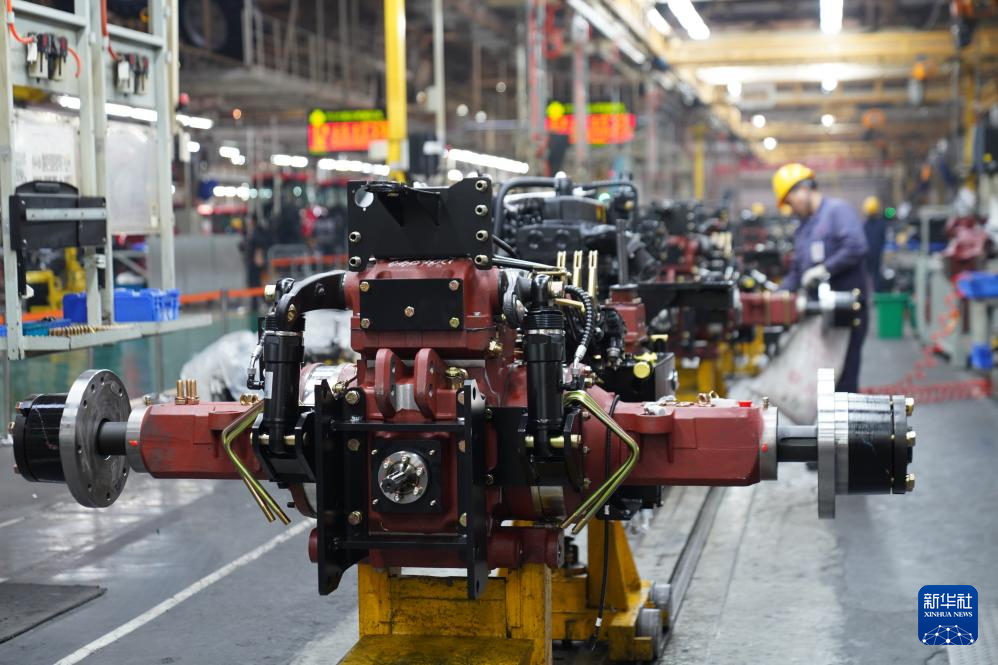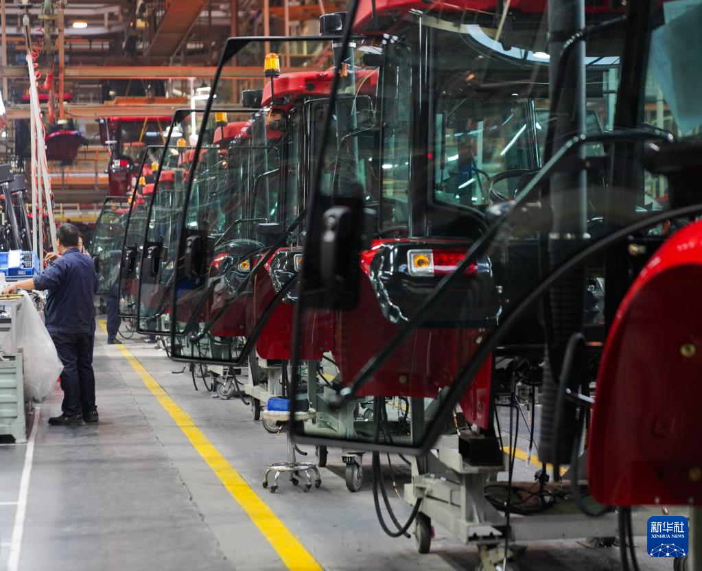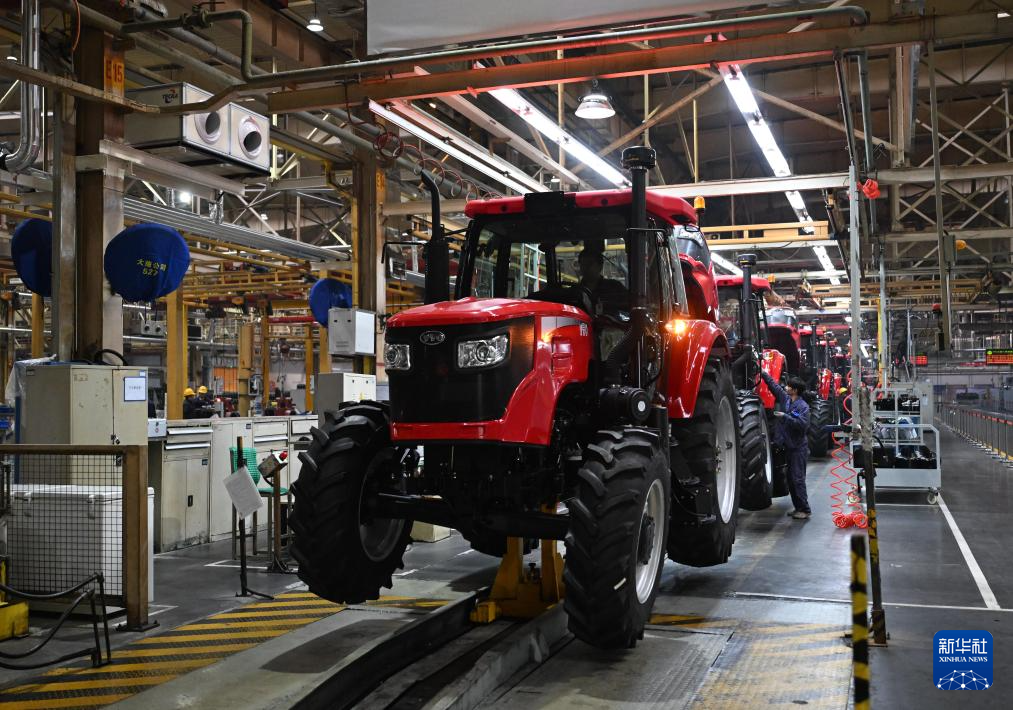 11月4日,工人在位于河南洛阳的国机集团中国一拖大轮拖总装线作业。新华社记者 戴明轩 摄