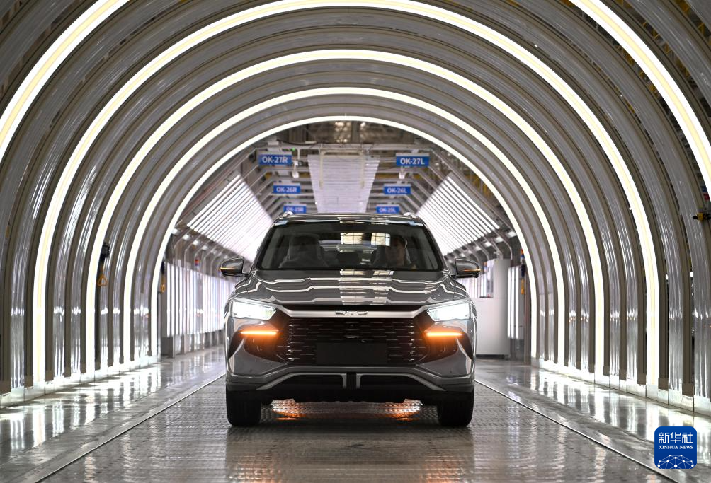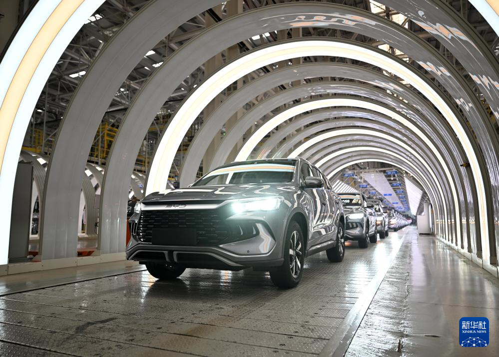 11月3日在郑州航空港区比亚迪总装工厂拍摄的新能源汽车“宋Pro”生产线。新华社记者 李嘉南 摄