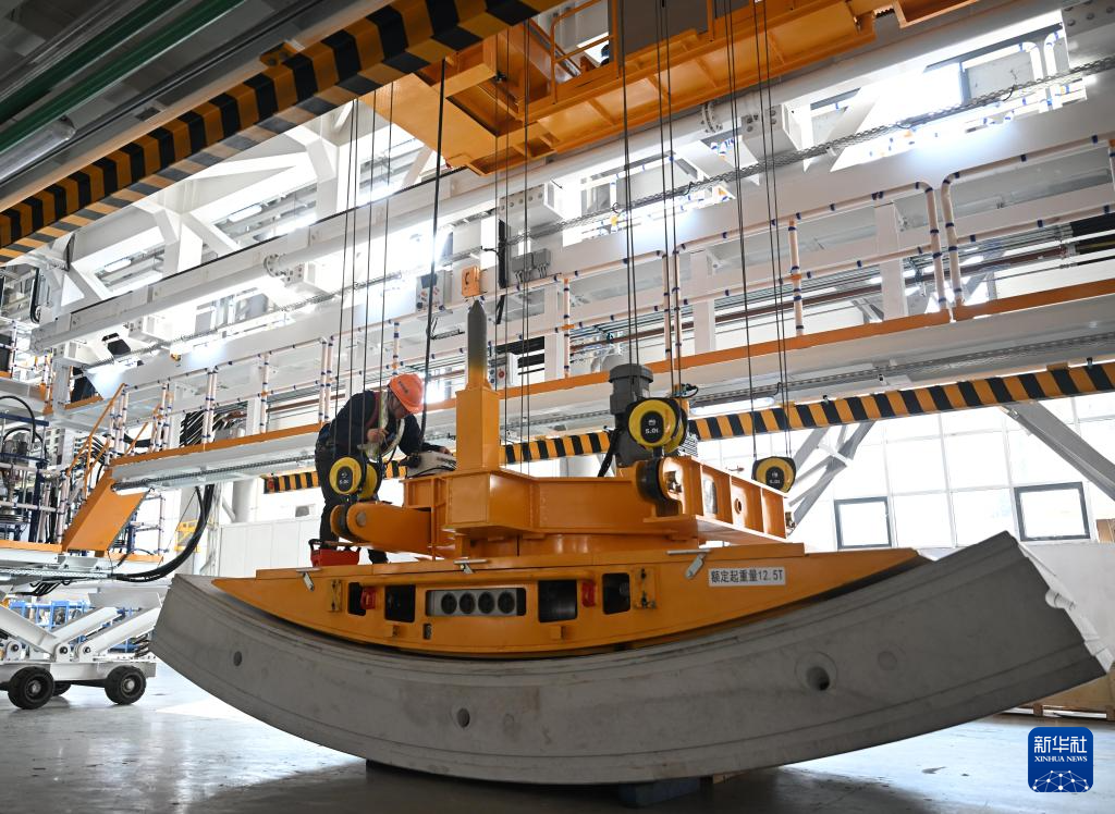 11月3日,工人在位于河南郑州的中铁装备集团车间进行盾构机管片吊机负载调试。新华社记者 李嘉南 摄