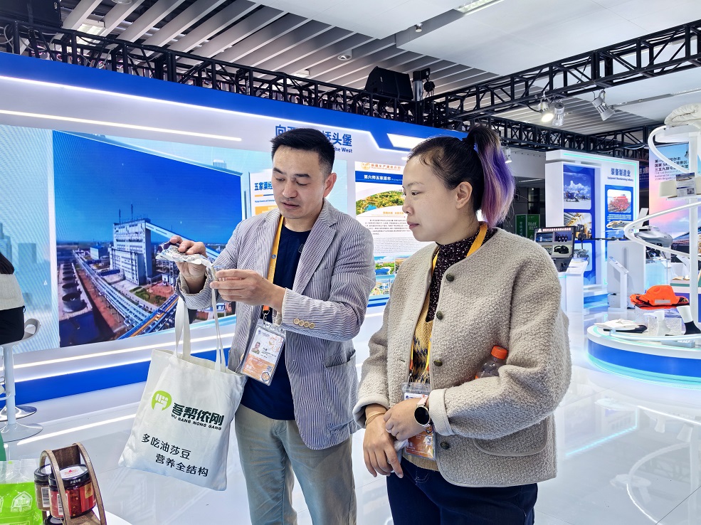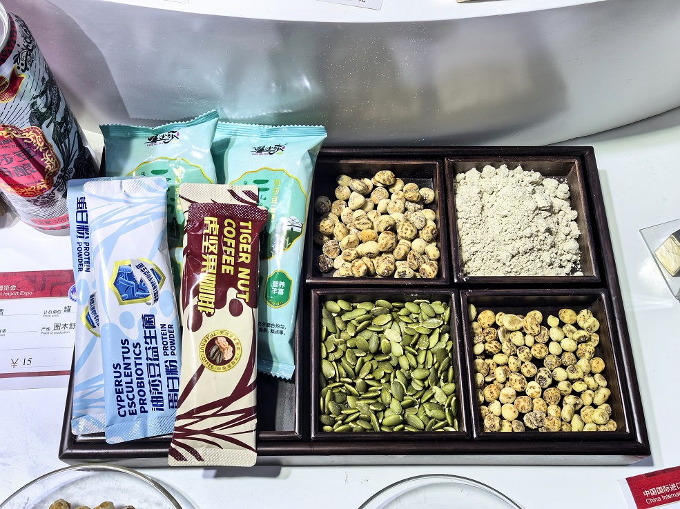 “这些年,越来越多消费者认识到油莎豆‘地下核桃’的营养价值,我们的产业链也在持续延伸升级。”参展商林波向观众介绍,“进博会是国际化的大舞台,我们就是想借着这个平台,把兵团培育的好产品推向更广阔的市场,让更多人感受到油莎豆的独特魅力。”