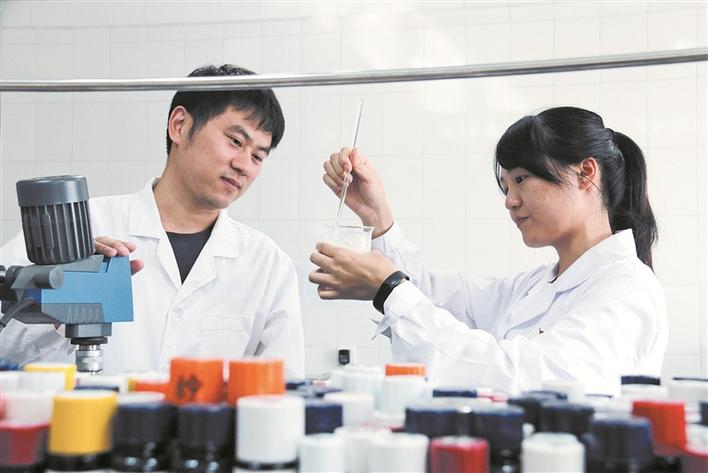 在新疆天润生物科技股份有限公司研发实验室,科研人员对初始产品进行性能测试(资料图片)。为推进科技创新,天润乳业长期同中国农业大学、新疆大学等高校开展产学研合作,建立了博士后科研工作站、新疆发酵乳微生物菌种资源开发重点实验室、中德畜牧业技术创新中心等一批创新平台。陈建龙 摄