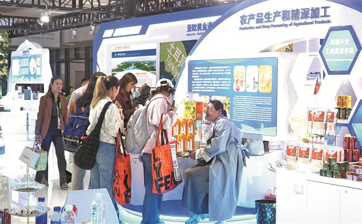 11月5日,第八届中国国际进口博览会兵团展位人气十足。兵团日报全媒体记者 李柏成 摄