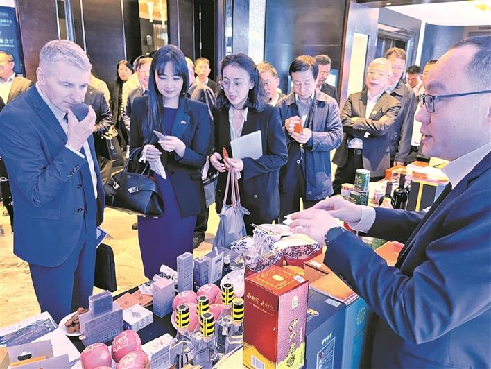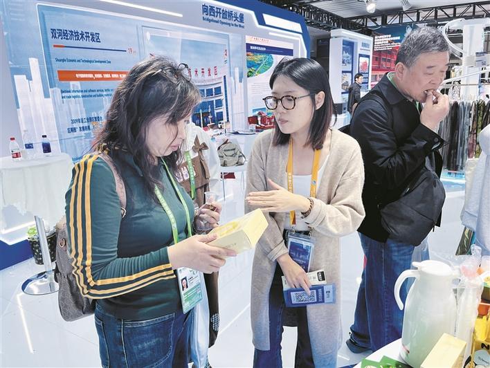 11月6日,在第八届中国国际进口博览会“投资兵团”产业推介会上,参会嘉宾了解兵团特色产品。兵团日报全媒体记者 刘美惠子 摄