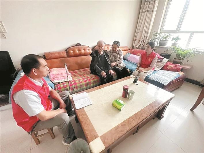 一师十三团红桥社区“两委”成员和志愿者走访了解社区高龄老人生活情况(资料图片)。史梅 摄