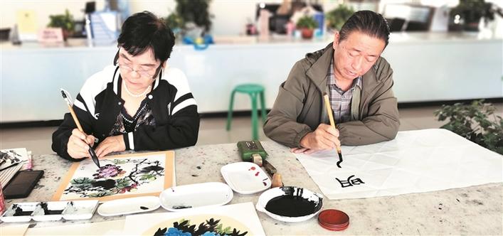 11月11日,十三师火箭农场与哈密市伊州区文化馆联合开展文化交流活动。图为两地书画爱好者在进行书法和国画创作。王晓燕 王璇 摄