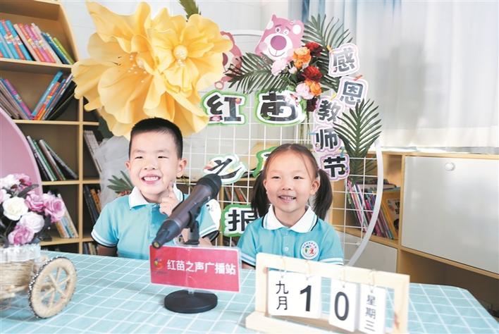 十三师红星实验幼儿园幼儿在红星之声广播站为老师们送上节日祝福(资料图片)。王晓燕 王璇 摄