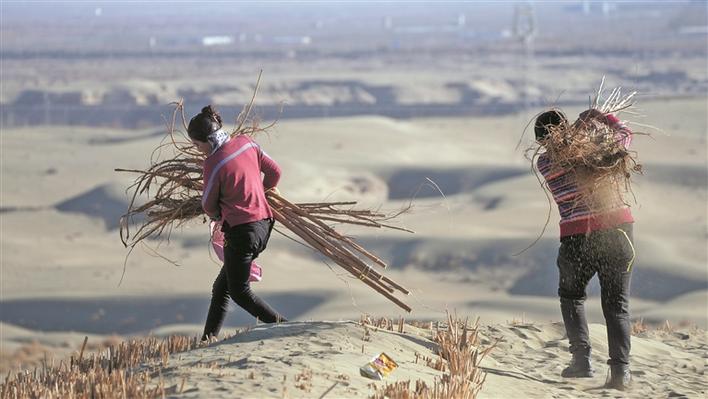 寒冬时节,万物收藏。在兵团南疆环塔克拉玛干沙漠边缘师市,职工群众并未“猫冬”,而是忙着治沙植绿,进一步巩固沙漠锁边工程成果。
