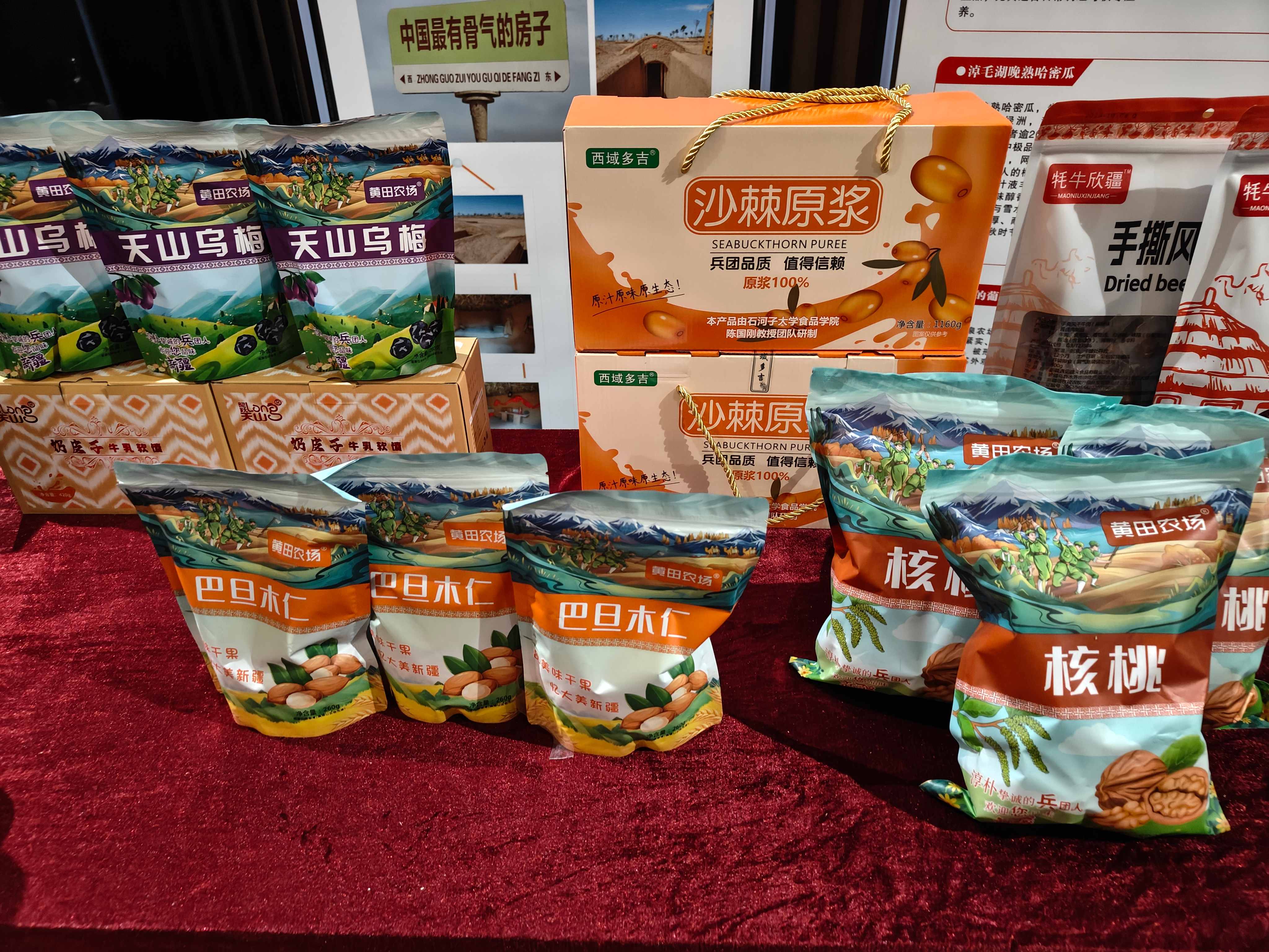 推介会现场摆放十三师新星市的特色农产品。胡杨网梁艳 摄