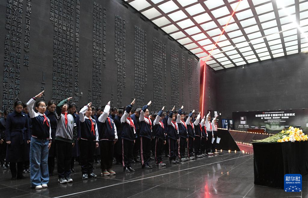 12月13日,人们在黑龙江哈尔滨侵华日军第七三一部队罪证陈列馆参加悼念活动。新华社发(刘洋摄)