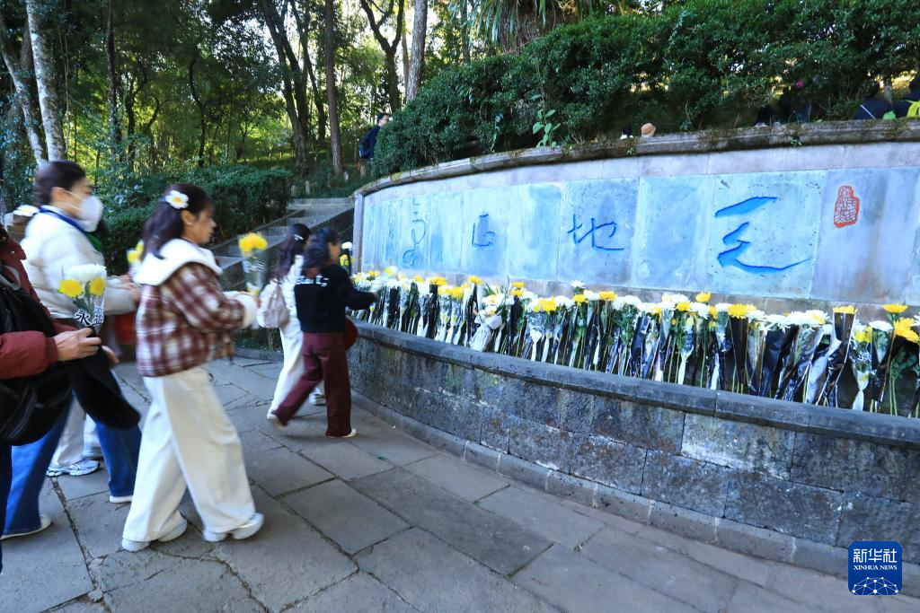 12月13日,游客在云南腾冲滇西抗战纪念馆天地正气碑前向抗战英烈敬献鲜花。新华社发(龚祖金摄)
